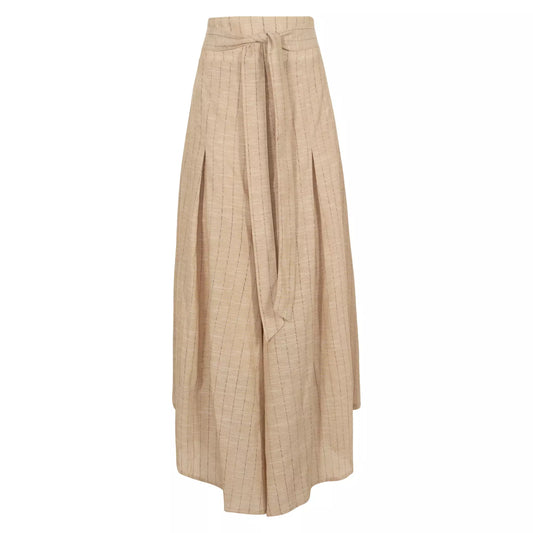 Calça pantacourt em tecido listrado leve. Possui cós largo com faixas para amarração. Composição:...