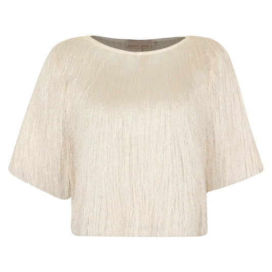 Blusa de manga curta em tecido de franjas. Apresenta modelagem ampla e decote canoa. ...