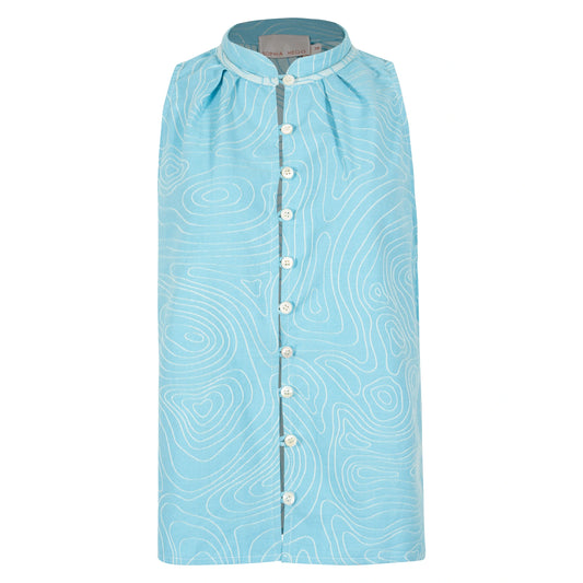 Regata em tecido estampado, com fechamento frontal a partir da gola com botões de madrepérola....