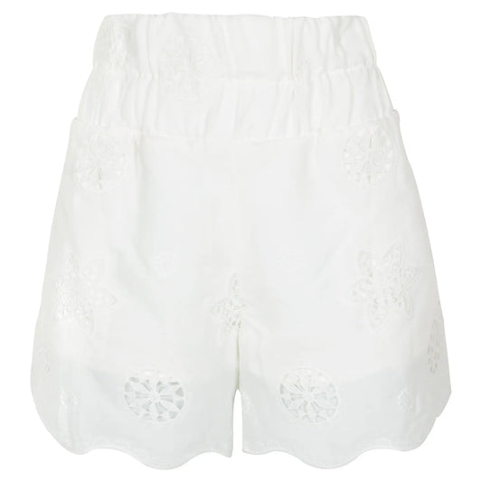 Shorts de cintura média e caimento levemente evasê em tecido bordado leve. Possui bolsos faca,...