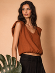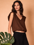 Regata de shape reto e comprimento curto, com ombros estruturados e decote suave. Possui fechamento posterior por botões aparentes e detalhe de amarração na barra, que ajusta a silhueta com leveza. Clean, atual e elegante.