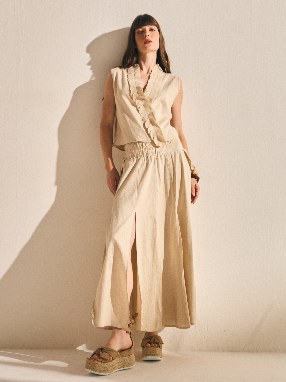 Composição: 70% Viscose 30% Linho 2% Elastano