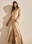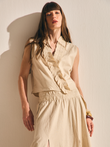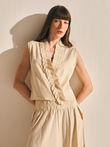 Regata com decote em V adornado por pétalas recortadas no próprio tecido, criando um detalhe delicado e orgânico.