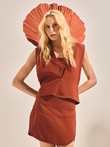 Shorts saia estruturado com recortes frontais, cintura alta e detalhe lateral.